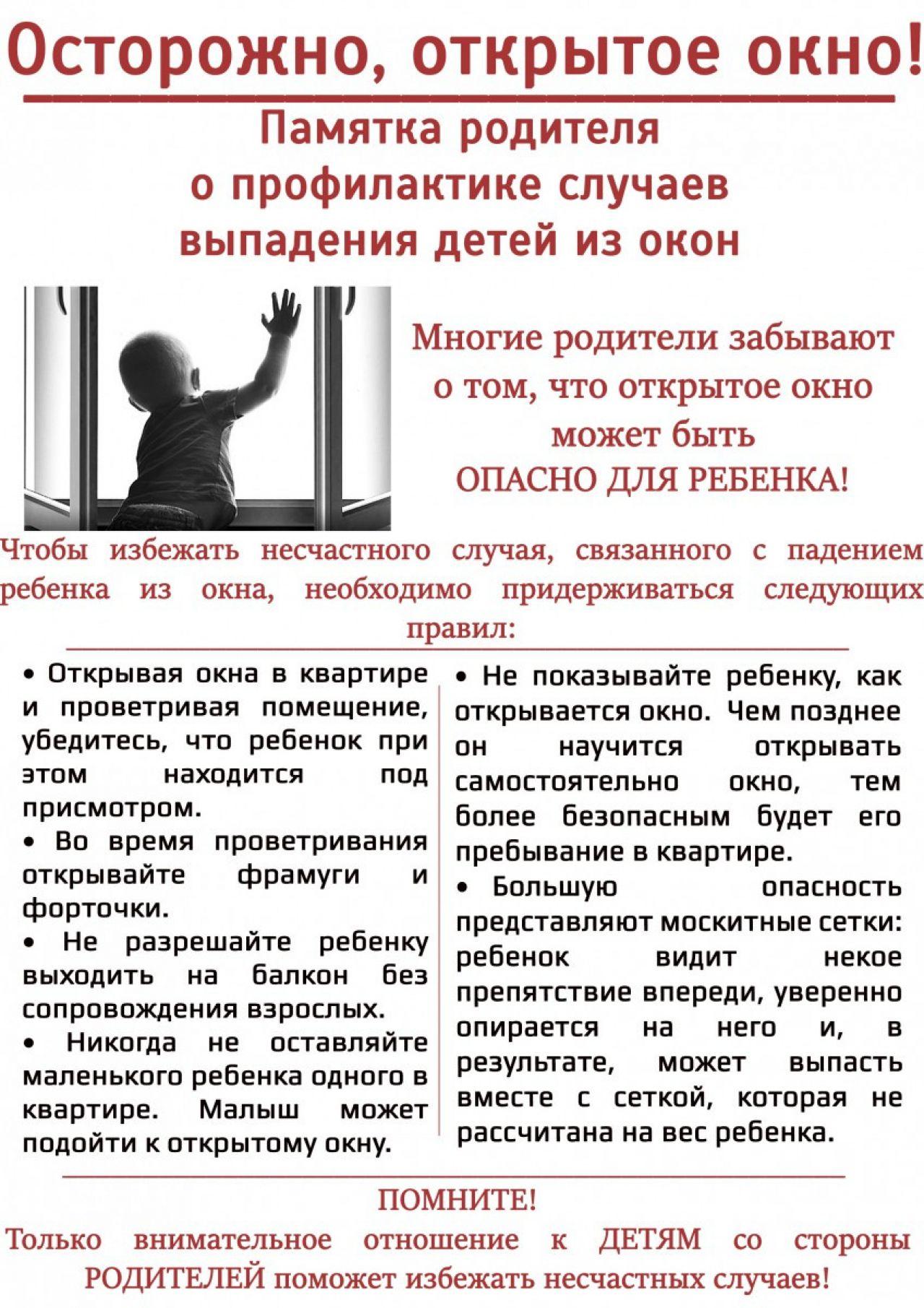 Памятка для родителей по профилактике выпадения детей из окон включает ряд мер, которые помогут снизить риск несчастных случаев. Основные рекомендации:Основные правилаНе оставляйте окна открытыми, если дома ребёнок. Даже кратковременное отвлечение может привести к трагедии. Не используйте...